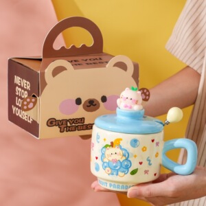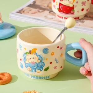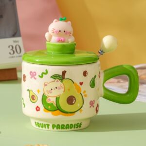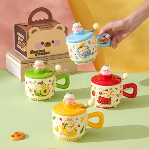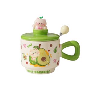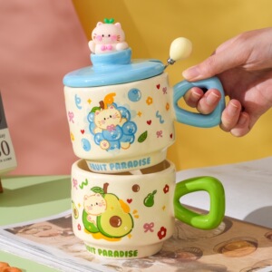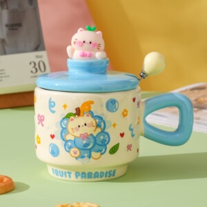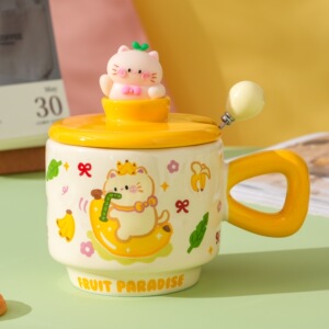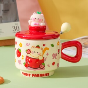 创意卡通可爱水果小猫咪陶瓷杯带盖家用办公情侣高颜值礼品马克杯