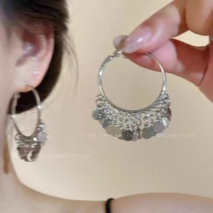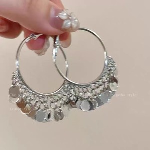 2025年跨境圆片流苏耳环女民族风高级感时髦气质耳钉个性夸张耳坠