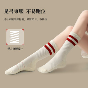 专业运动袜室内健身袜瑜伽袜子女中筒袜防臭吸汗透气防滑高筒袜子