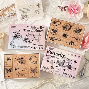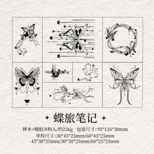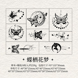 跨境专供蝶与晨梦复古榉木手账印章 蝴蝶手账素材diy木质印章批发