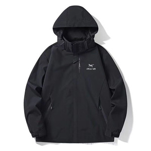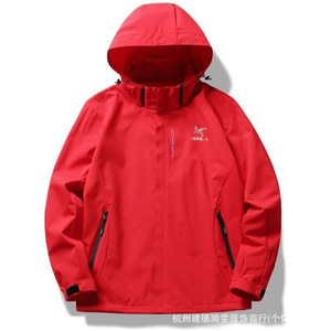冲锋衣单层连帽纯色防水男女同款薄款单冲防风外套三防登山服印花