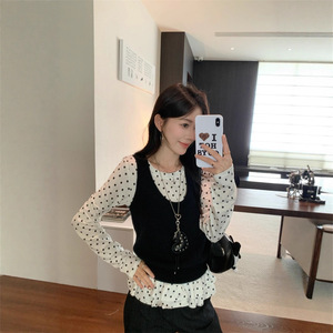 实拍 2025秋季韩系百搭显瘦修身圆领T恤针织马甲背心长裤三件套女