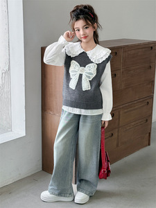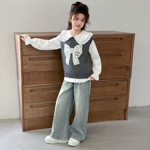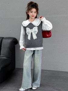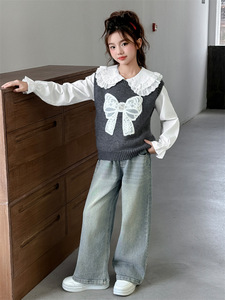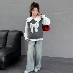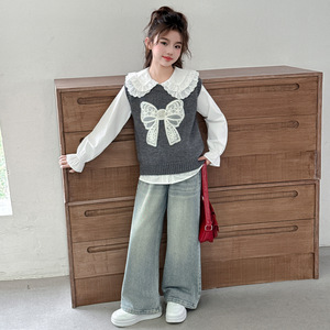 女童套装春季新款儿童马甲衬衫裤子三件套中大童女孩韩版休闲童装