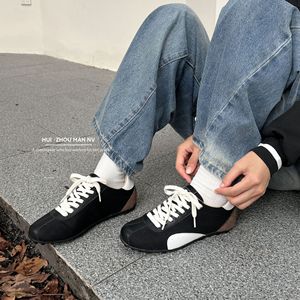 真皮复古芭蕾德训鞋女2025新款百搭显瘦拼色休闲运动鞋平底阿甘鞋