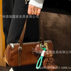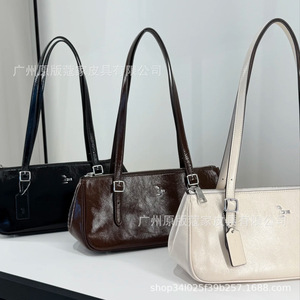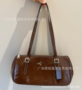 蔻c家2025新款Asher油蜡皮腋下包百搭大容量单肩手提包真皮法棍包