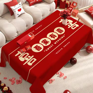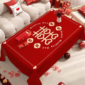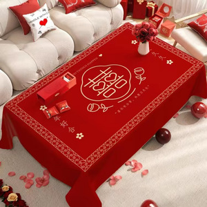 结婚桌布红色喜庆婚礼布置装饰拜堂喜字台布订婚宴摆台茶几餐桌布
