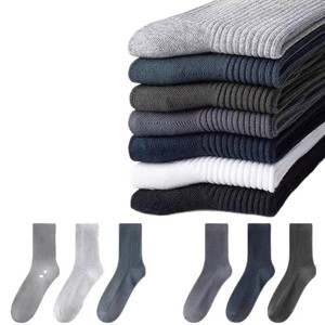诸暨袜子男士中筒秋冬双针纯棉袜吸汗防臭运动男生黑白色商务长袜