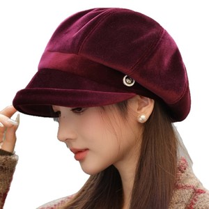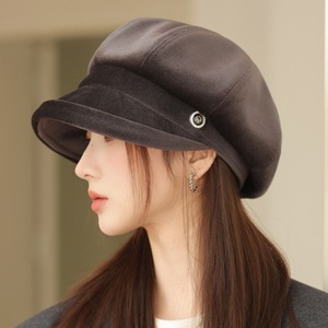 秋冬韩系M标小香风复古八角帽户外保暖时尚气质翘檐鸭舌中老年帽