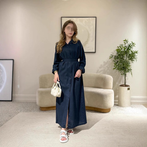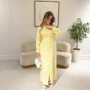 2025新款欧美春秋季ins风宽松女士口袋休闲翻领单排扣棉麻连衣裙