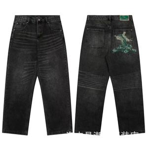 跨境外贸潮牌derschutze休闲长裤梅花刺绣街头潮流宽松阔脚牛仔裤