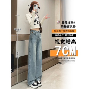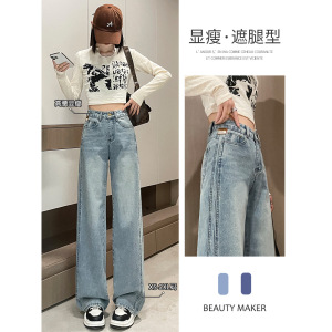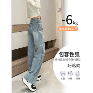 高腰窄版阔腿牛仔裤女2025年爆款显瘦浅色小个子宽松直筒裤A6108