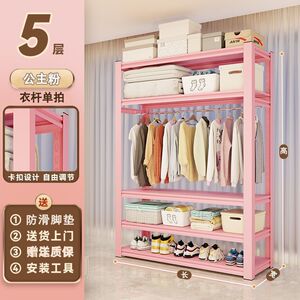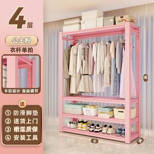 彩色衣帽架家用置物架衣物收纳架子落地多层加厚衣橱角钢服装货架