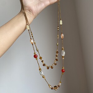 休闲老钱风彩色串珠项链民族风设计感复古叠戴小众高级感百搭项链
