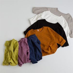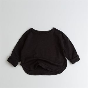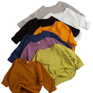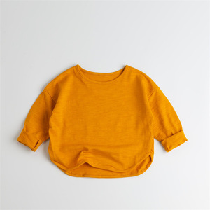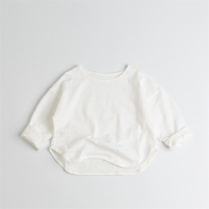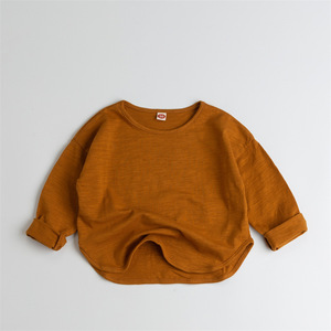 新品软糯竹节棉宽松落肩儿童装T恤长袖男女童洋气外穿上衣t打底衫
