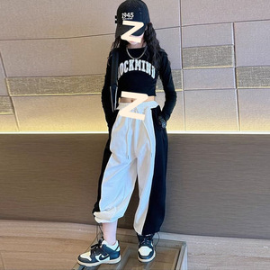 女童秋装长袖T恤哈伦裤两件套2025新款中大童爵士舞舞蹈服套装潮