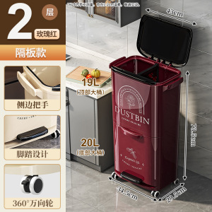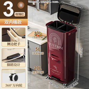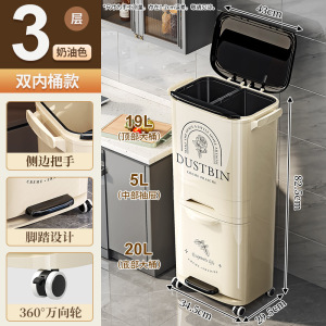 滑轮垃圾桶大容量厨房分类专用高款带盖大号3层免弯腰移动收纳桶