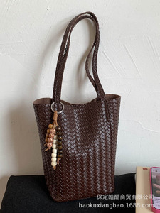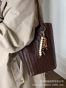 复古包包女大容量2025新款夏季休闲单肩编织子母包爆款通勤水桶包