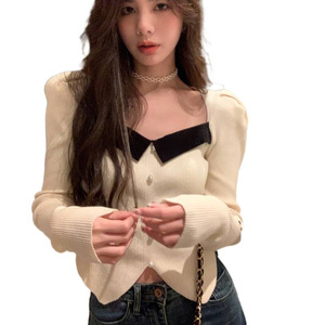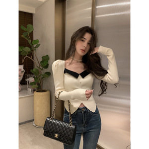 邱肉瑶 新款拼色毛衣套头修身型小个子休闲显瘦加厚打底针织衫女