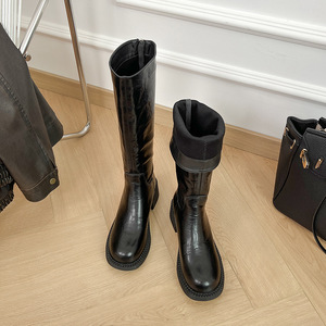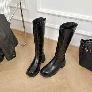 不过膝长靴2025新款百搭显瘦长筒骑士靴子厚底复古高级感小众女靴