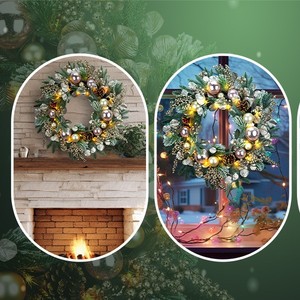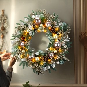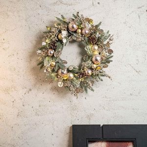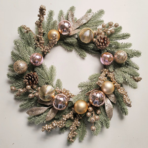 跨境亚马逊圣诞花环批发仿真松针红果松果圣诞花环圣诞节装饰花圈