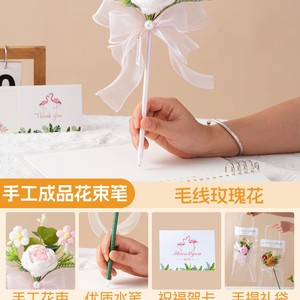 成品花笔-毛线玫瑰花+护手霜+礼袋装