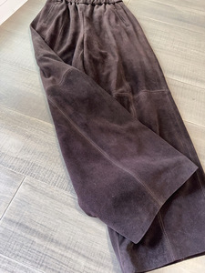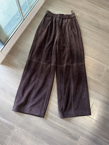 2025秋冬新款真皮绵羊皮反绒皮裤女松紧腰休闲裤直筒裤宽松长裤潮