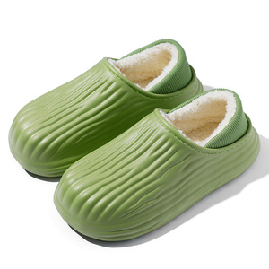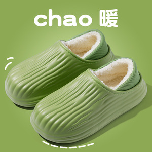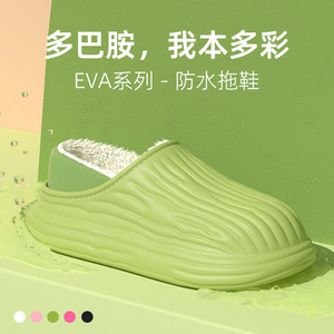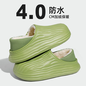 防水防滑男士加绒棉拖鞋秋冬季2025新款加绒保暖厚底毛绒运动棉拖
