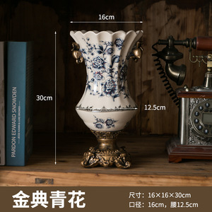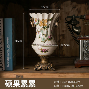 美式复古冰裂纹陶瓷花瓶创意家居摆件装饰品桌面欧式高足双耳花瓶