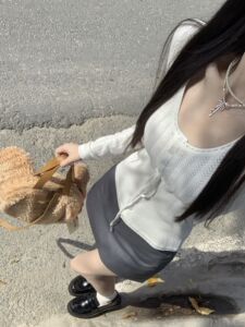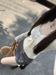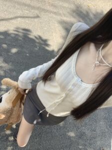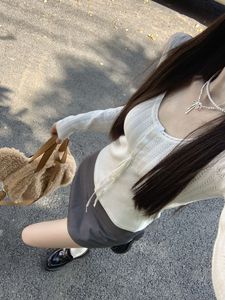 韩系辣妹镂空u领长袖针织衫女秋季设计感小众修身显瘦短款上衣潮