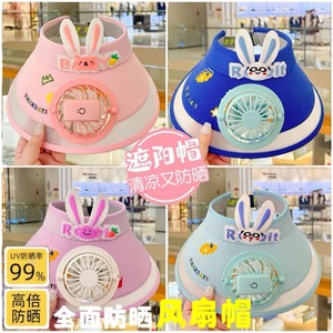儿童带风扇空顶防晒帽子宝宝夏季新款小朋友男孩女童太阳帽遮阳帽