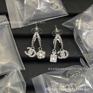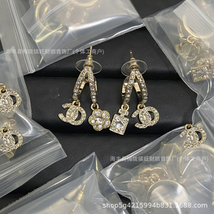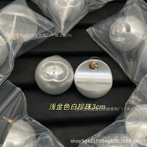 香家新款双C耳钉 小香风高版本山茶花圆形珍珠耳饰名媛气质风耳环