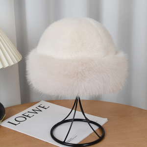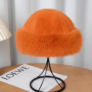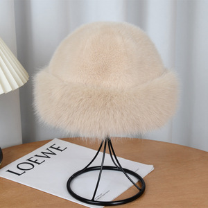 跨境秋冬款仿狐狸水貂毛绒蒙古帽保暖护耳盆帽户外防寒百搭渔夫帽