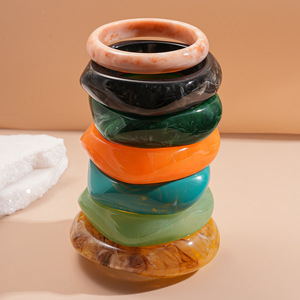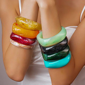 欧美树脂晕染拉花不规则方形椭圆形手镯跨境个性简约高级感手饰女