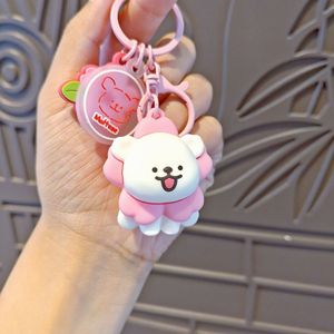 新款樱花线条小狗钥匙扣卡通可爱情侣书包挂件钥匙链圈配饰娃娃机