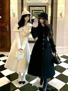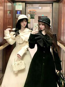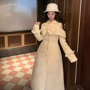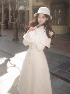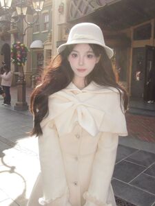 法式千金蝴蝶结收腰长款斗篷白月光穿搭冬季大衣两件套