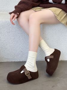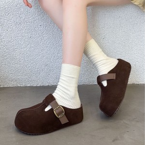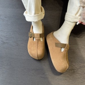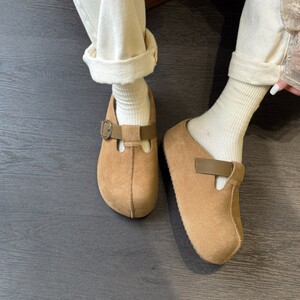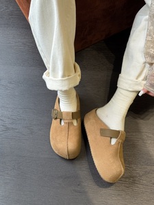 2025秋鞠婧祎同款厚底6CM花生吐司勃肯鞋包头穆勒拖鞋头层牛皮女