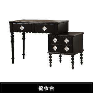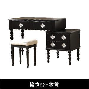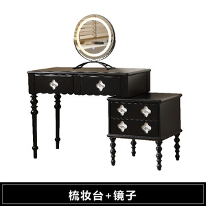 法式复古梳妆台黑色斗柜一体可伸缩调节床头柜中古风化妆桌全实木