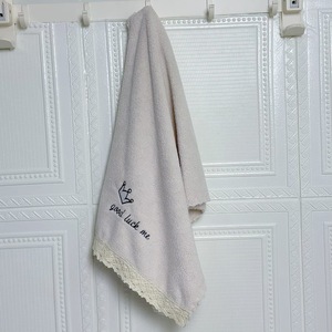 新款涤锦珊瑚绒蕾丝刺绣亲肤毛巾柔软加大浴巾吸水不掉毛儿童毛巾