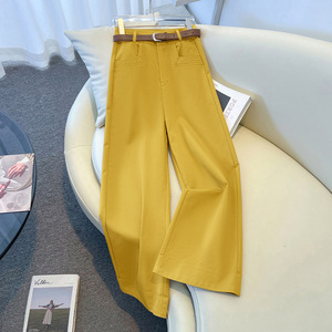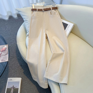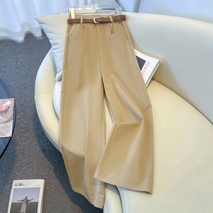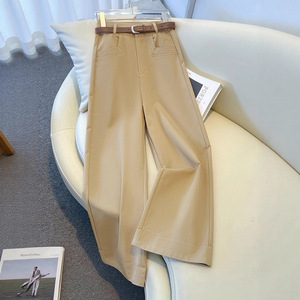卡其色阔腿裤女早秋2025新款高腰西装裤小个子休闲裤九分直筒裤子