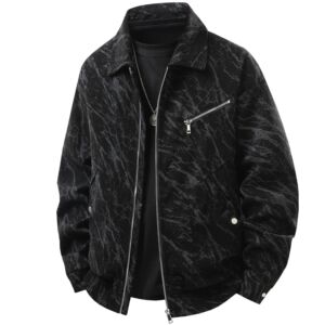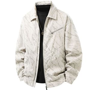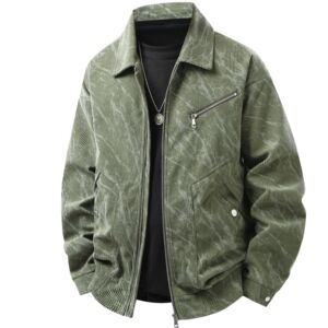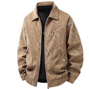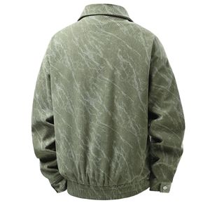 春秋季港风潮男装时尚印花方领夹克胖大码加肥宽松灯芯绒休闲外套