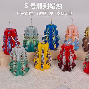 外贸纯手工雕花雕刻蜡烛S号生日结婚伴手礼物纪念品装饰香薰摆件