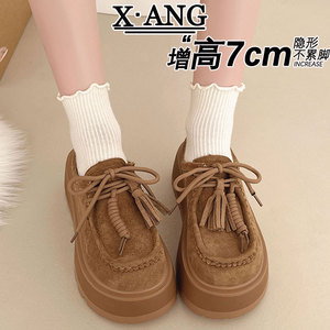 真皮勃肯鞋女包头半拖鞋外穿2025秋季新款松糕厚底增高小个子女鞋