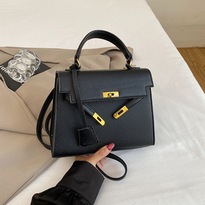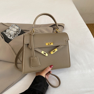 高级感手提凯莉包包女2025新款小众复古荔枝纹百搭洋气单肩斜挎包