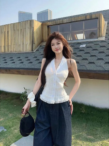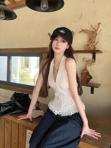夏季2025新款白色蕾丝挂脖背心韩系chic甜辣纯欲风别致吊带上衣女