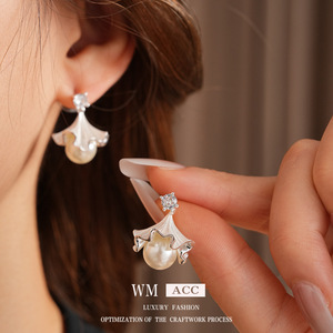 银针锆石银杏叶珍珠耳环法式复古时尚百搭耳饰气质轻奢高级感耳饰