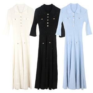 法式优雅连衣裙女夏季新款亮片针织连衣裙收腰小香风名媛千金裙女