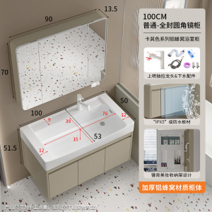 铝蜂窝浴室柜陶瓷一体洗手盆卫生间智能镜柜组合厕所洗手洗脸盆柜