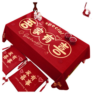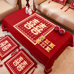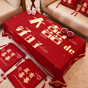 结婚茶几桌布订婚客厅红色喜字餐桌台布婚房装饰布置婚庆用品大全