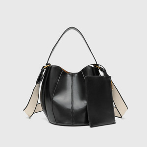 跨境2025新款辑线女包拼接束口水桶包时尚南瓜形单肩斜挎手提包潮