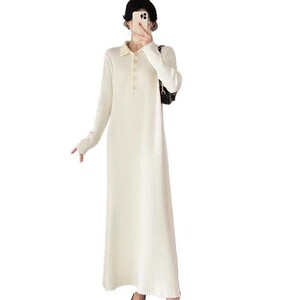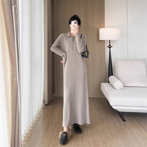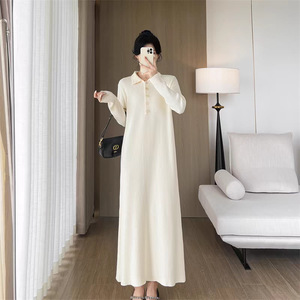 轻奢风小众简约超长款大码灯芯绒连衣裙女秋冬季新款宽松显瘦长裙